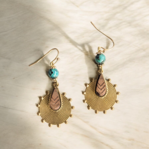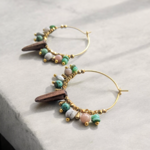 Boucles d’oreilles ethnique bois, turquoise