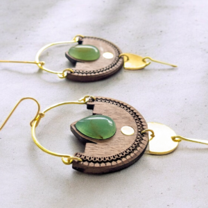 Boucles d’oreilles bois et pierre aventurine