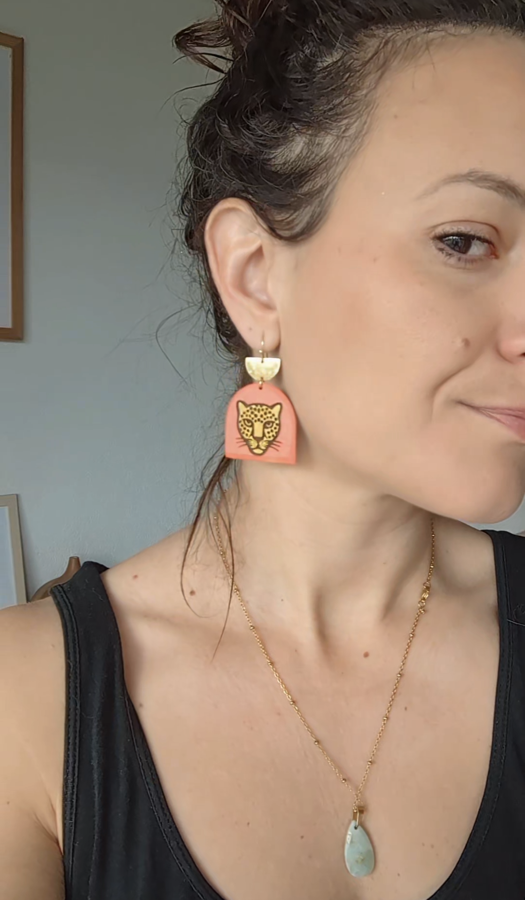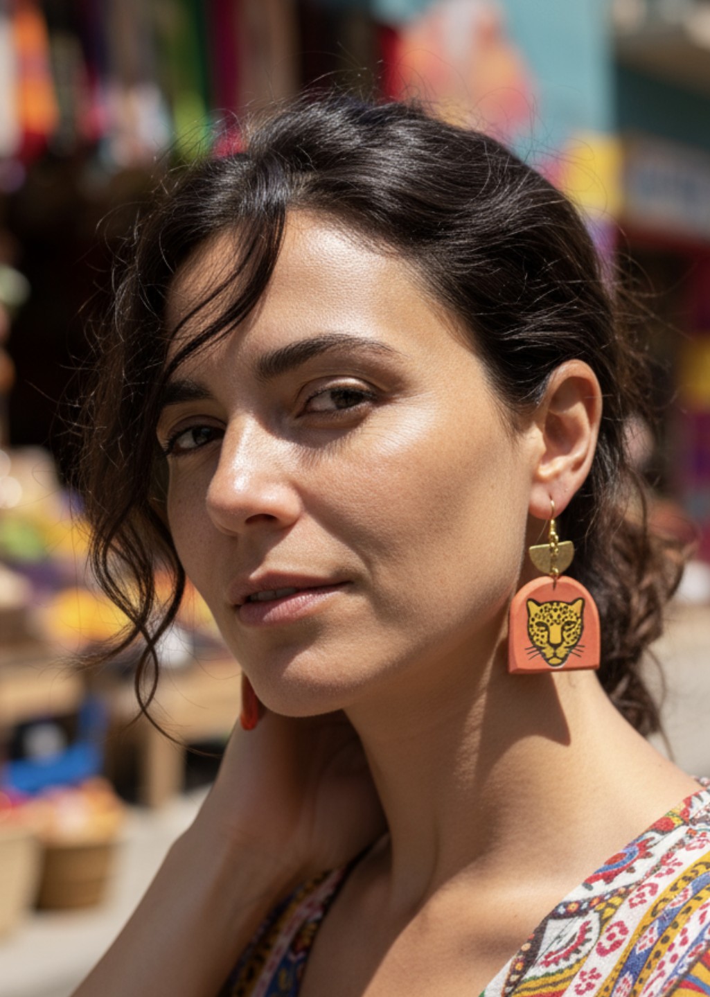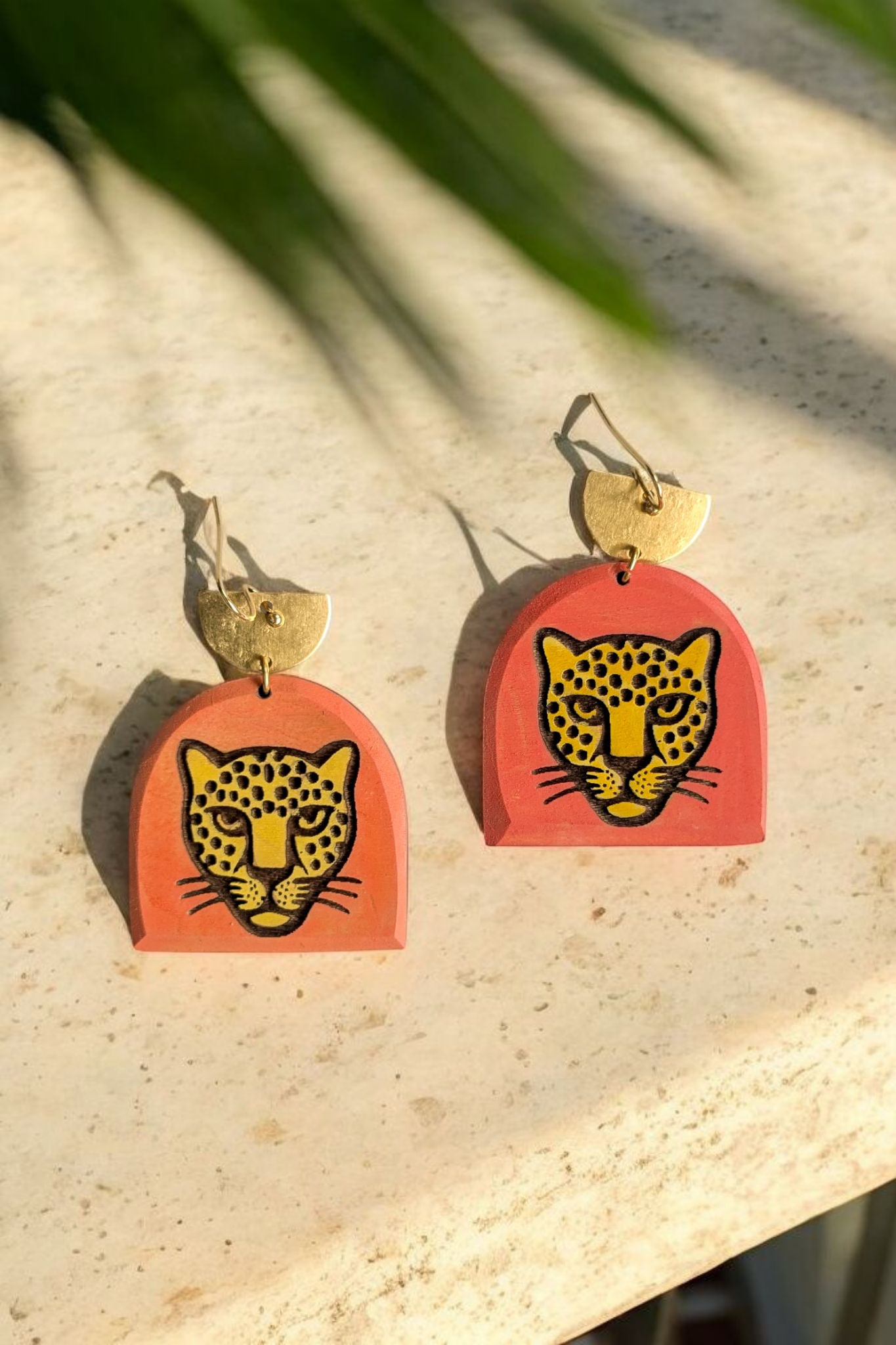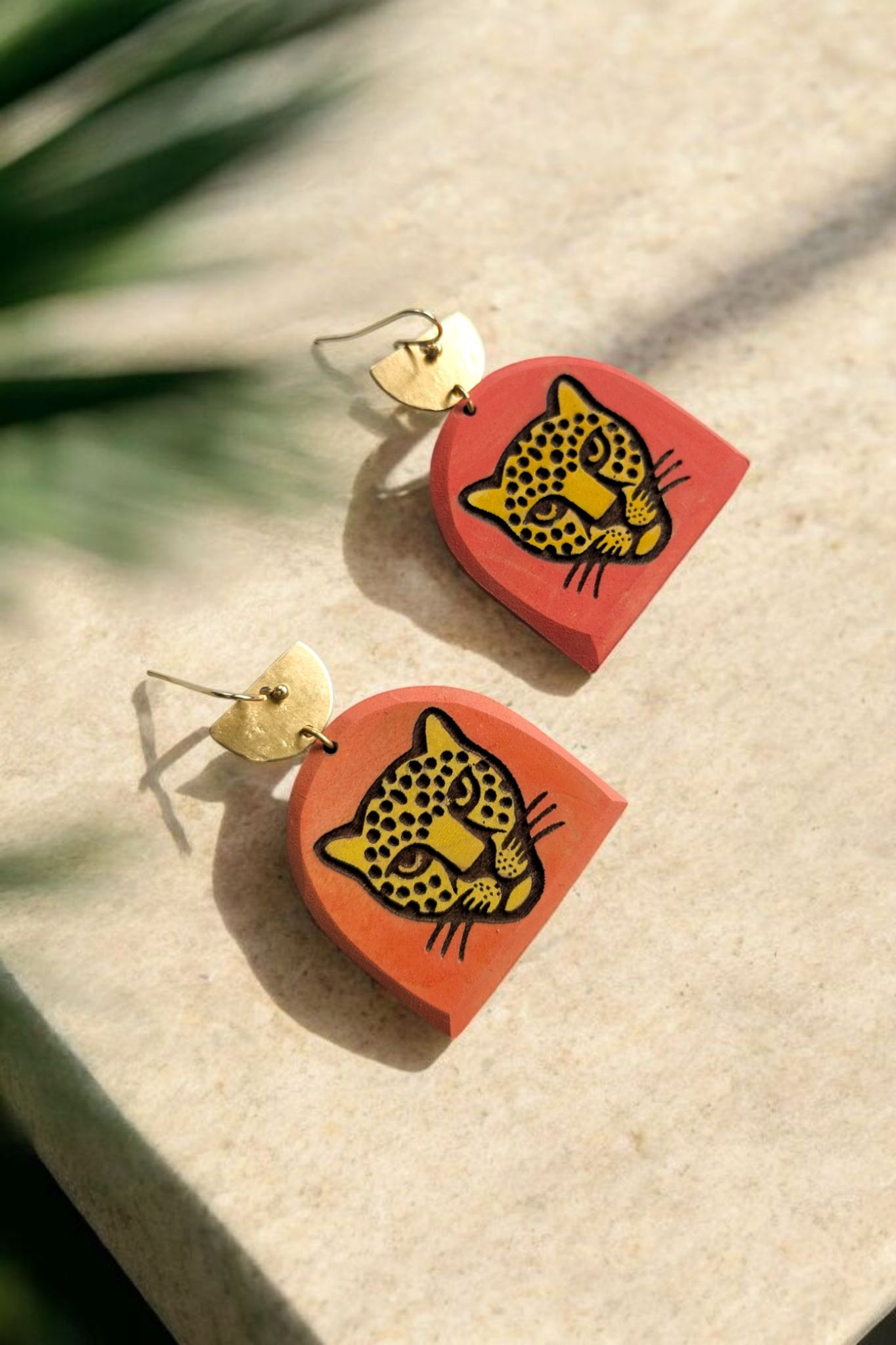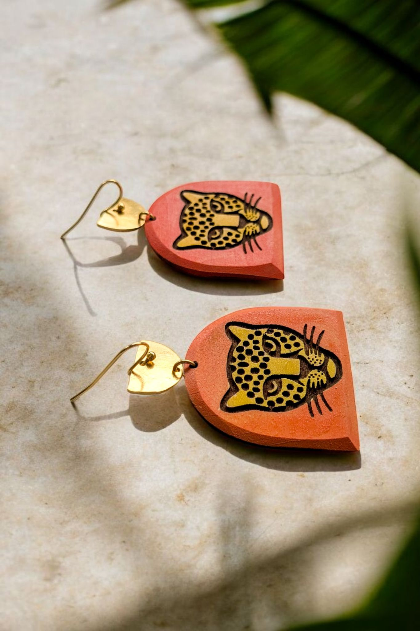 Boucles « Jaguar Sacré » — Bois peint & acier inoxydable