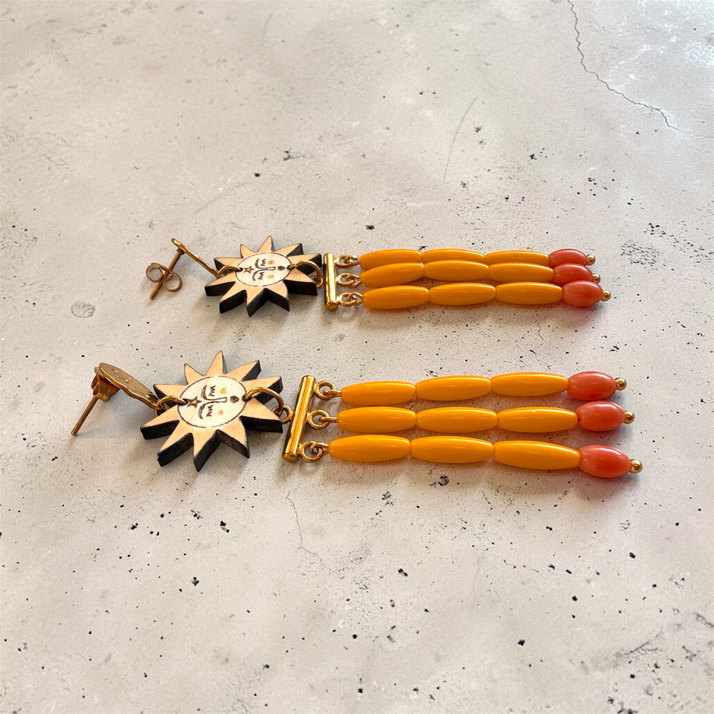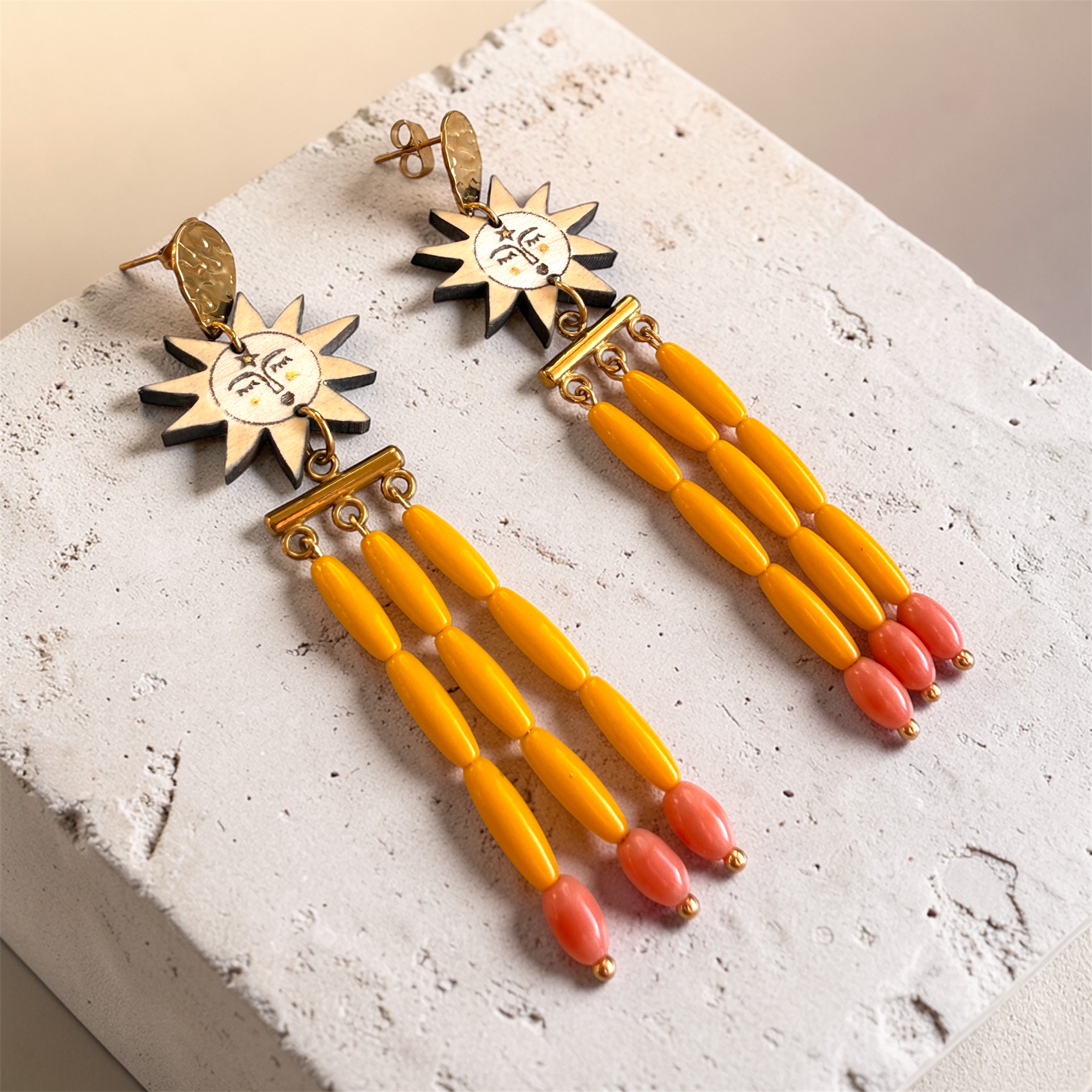 Boucles d’oreille en bois d’érable ,attache en acier inoxydable et perle de verre.