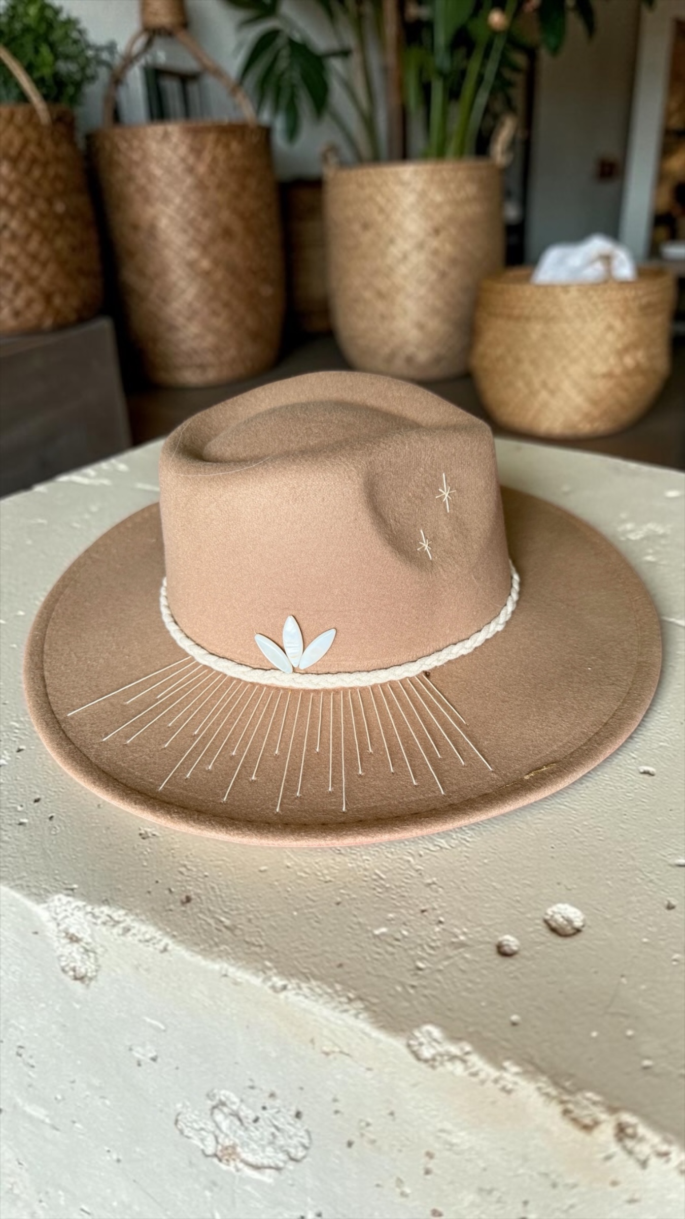 Ce chapeau étant délicatement customisé à la main, il est recommandé d’éviter tout contact avec l’eau.