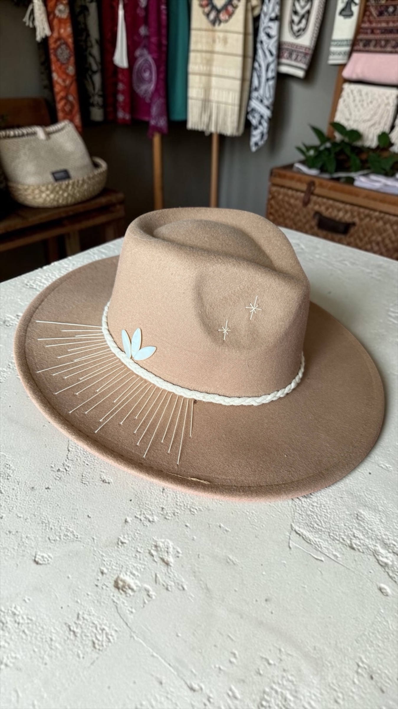 Chapeau en base textile soigneusement sélectionnée, entièrement customisé à la main dans mon atelier.
